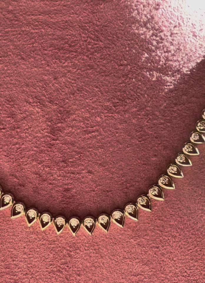 Round Diamond Tennis Necklace with Open Pear Bezel Settin